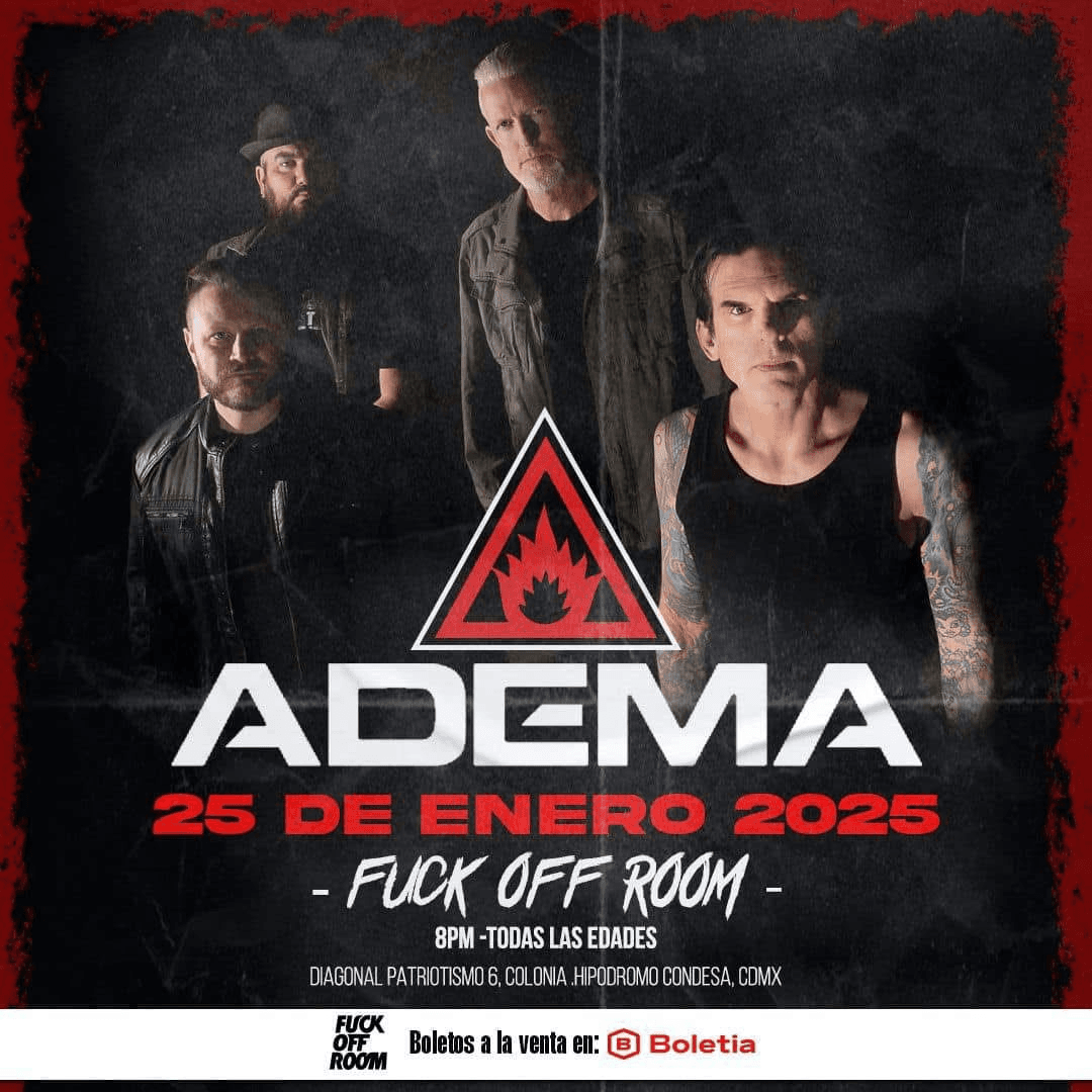 Este 25 de enero, Adema se presentará en el Fuck Off Room, un recinto que promete una atmósfera vibrante y llena de energía para los amantes del nu metal. Como invitados especiales a Filtro se unirá al show, llevando su intensidad y su potente estilo a esta una de las ultimas noches de enero.